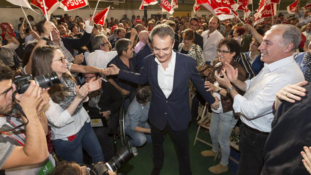 En el plano más político, Zapatero sí que se diferenció claramente del proyecto de Podemos, durante un mitin celebrado en Valladolid, su localidad natal, ante más de 2.000 personas que llenaron a rebosar el pabellón La Victoria, algo que siempre le suele costar al PSOE por estas tierras.