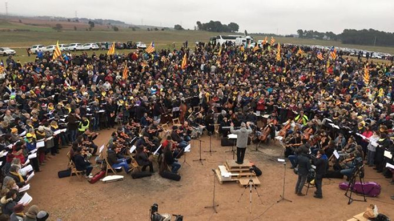 Els intèrprets s'han trobat en l'esplanada davant el centre penitenciari una hora abans del concert -que començava a les 12.00 hores- i han realitzat aquesta obra "pràcticament sense haver assajat". "Amb tanta gent és difícil que es faci, a més amb la intensitat i les ganes que s'han posat per part de tots", ha destacat la portaveu.