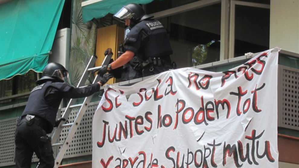 En no poder accedir a l'edifici pel portal, els agents dels Mossos van muntar dues escales per pujar i entrar per les terrasses, en les quals hi havia i on es van produir els incidents objecte de judici. La petició inicial de la Generalitat i de la Fiscalia era una condemna de més de dos anys de presó amb l'argument que haurien lesionat alguns agents antiavalots.
