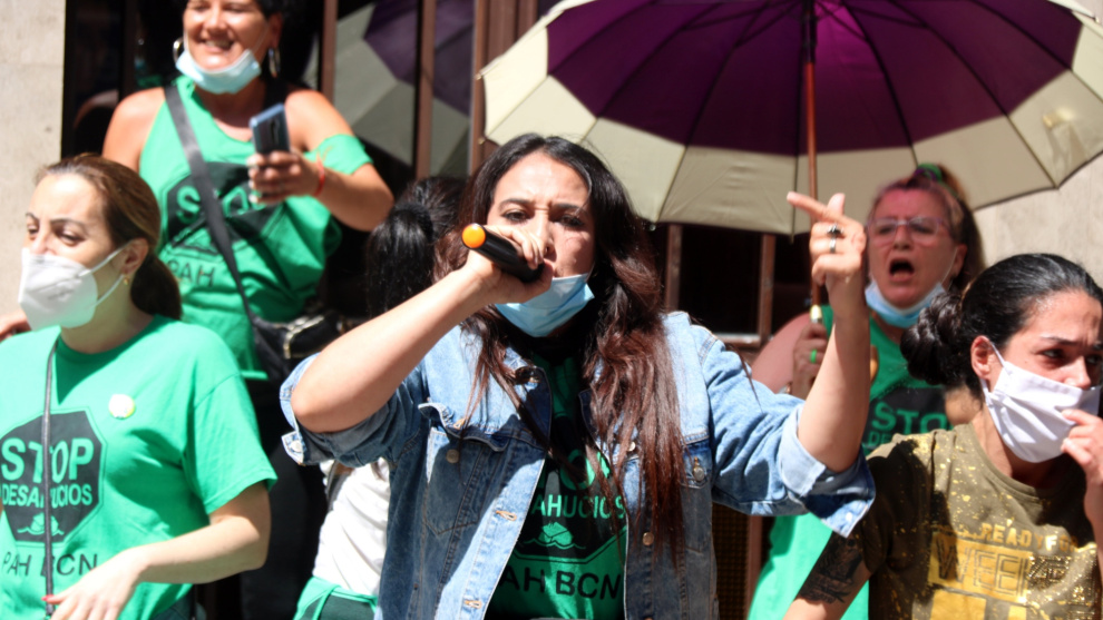La concentració d'uns 300 activistes de la Plataforma d'Afectats per la Hipoteca (PAH) i sindicats d'habitatge ha aturat aquest dijous el primer desnonament de la "nova normalitat". D'aquesta manera la Liliana i els seus dos fills de set i tretze anys podran seguir vivint al pis de l'Hospitalet de Llobregat que des de fa un any i mig és casa seva. La portaveu de la PAH, Lucía Delgado, ha exigit al Govern espanyol que modifiqui el reial decret de la 'nova normalitat' perquè s'aturin "tots els desnonaments, també els d'ocupació", i és que Liliana afirma que pagava el relloguer d'una habitació a un estafador. Així mateix, Delgado també ha demanat al Govern que faci servir les eines perquè el Banc Sabadell i el fons Cerverus ofereixin un lloguer social.