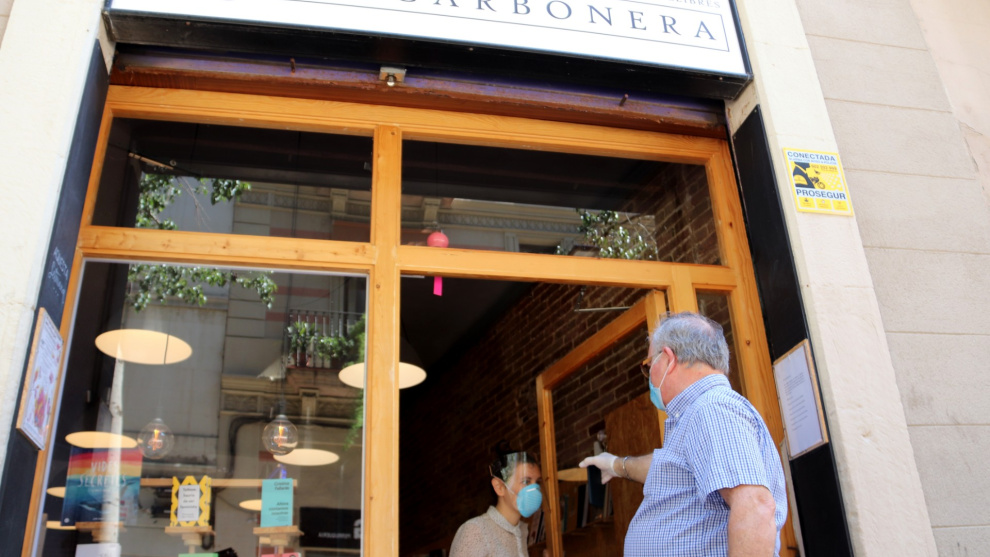 Les llibreries han reobert amb fortes mesures de protecció per a treballadors i compradors, i només per entregar en mà les comandes preparades durant el confinament. De fet, els clients no s’hi poden passejar i no poden remenar entre els prestatges per escollir nous volums.