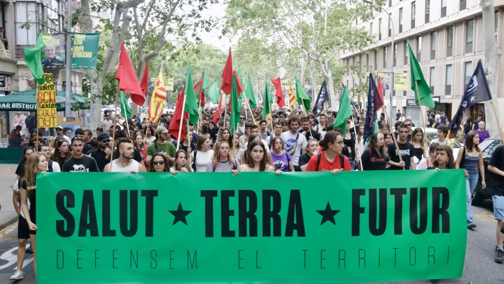 Sota el lema "Salud, terra, futur", centenars de joves –1.700 segons la Guàrdia Urbana– s'han manifestat aquest dissabte a Barcelona en defensa de l'ecologisme i en contra del sistema capitalista. Tot just un dia abans de la jornada electoral del 9-J, diferents col·lectius juvenils i ecologistes han exigit un "canvi de rumb" per garantir un millor futur per a les pròximes generacions, encara que hi ha la sensació que les conseqüències de la crisi ecosocial són irreversibles.