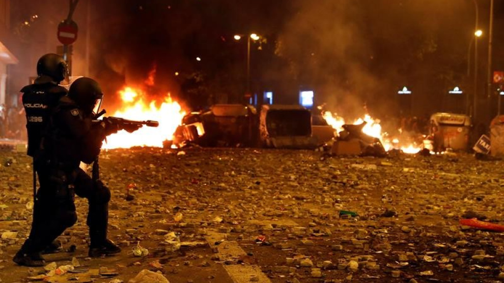 ENFRONTAMENTS ENTRE MANIFESTANTS I POLICIESCinquena nit d'aldarulls amb un grau més alt de violència