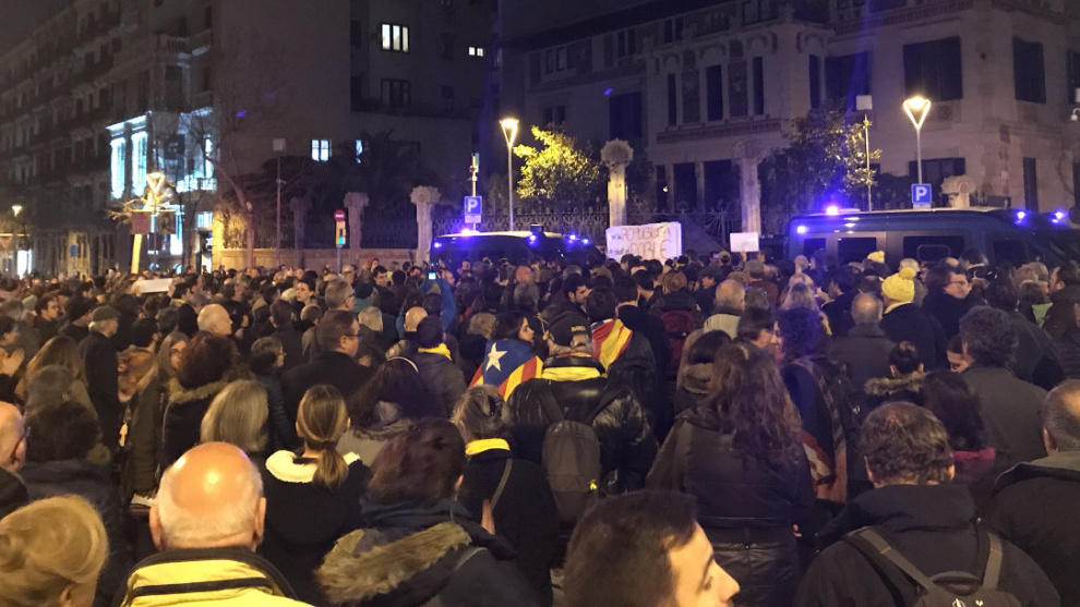 A Barcelona, més d'un miler de persones s'han concentrat a la cruïlla entre els carrers Roger de Llúria i Provença, on han cridat consignes demanant l'alliberament dels Jordis, Junqueras i Forn, com ara "falten els presos". El crit més unànime, no obstant, ha estat un de més genèric: "llibertat, llibertat", que s'ha acompanyat amb peticions -menys generalitzades- a favor d'una nova vaga general com les dels dies 3 d'octubre i 8 de novembre, i amb dubtes sobre la qualitat democràtica de l'Estat: "L'hi diuen democràcia i no ho és".