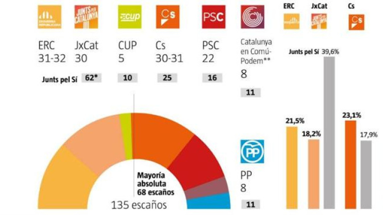ELECCIONS 21DUna nova enquesta pronostica gairebé un empat entre ERC, JuntsxCat i C's