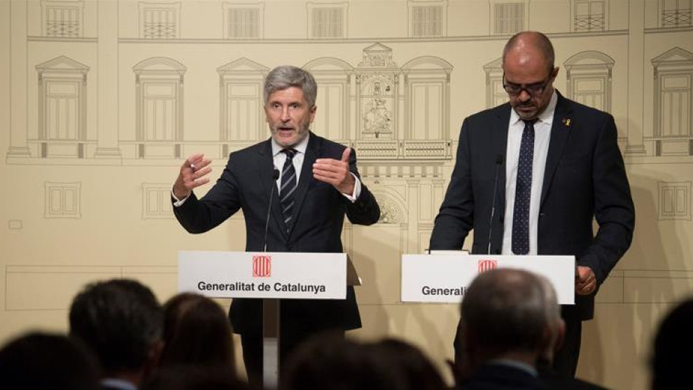 Després d'un mes de cartes entre el president Quim Torra, Grande-Marlaska i la delegada del govern central a Catalunya, Teresa Cunillera, ambdues administracions han volgut llençar un missatge de cooperació i coordialitat. Tanta, que el mateix conseller d'Interior no ha fet esment de les repetides demandes per part de Torra a Interior d'informar sobre les mesures adoptades per part dels cossos policials estatals contra els agents implicats en esdeveniments violents contra independentistes. Sí que ho ha fet Grande-Marlaska, qui ha defensat que es tracta de casos aïllats: "Són casos esporàdics, per ser concrets. I, a més, són casos judicialitzats. Deixem que siguin les autoritats judicials qui les resolguin", ha contestat als periodistes.