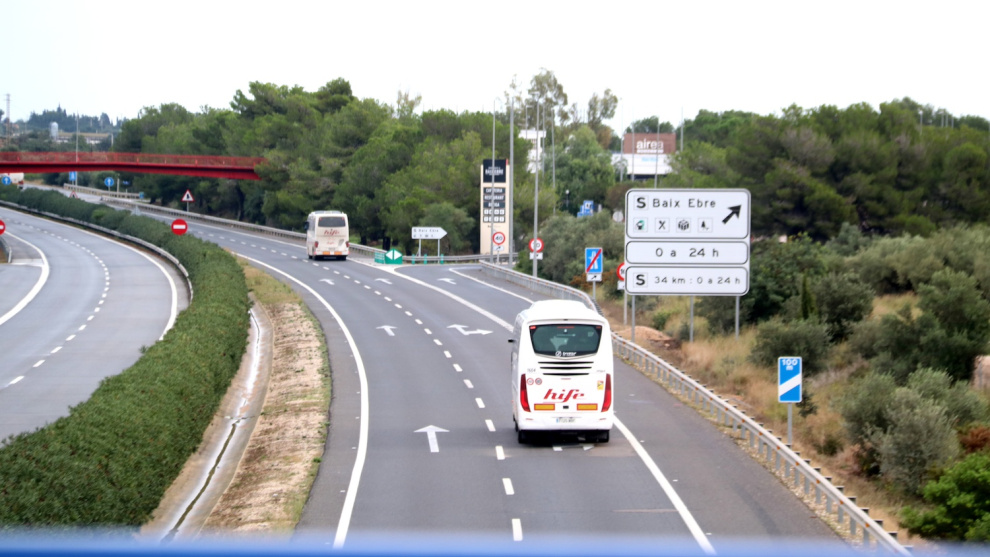 Dos únics busos circulant per l'AP-7 a l'Aldea aquest dilluns
