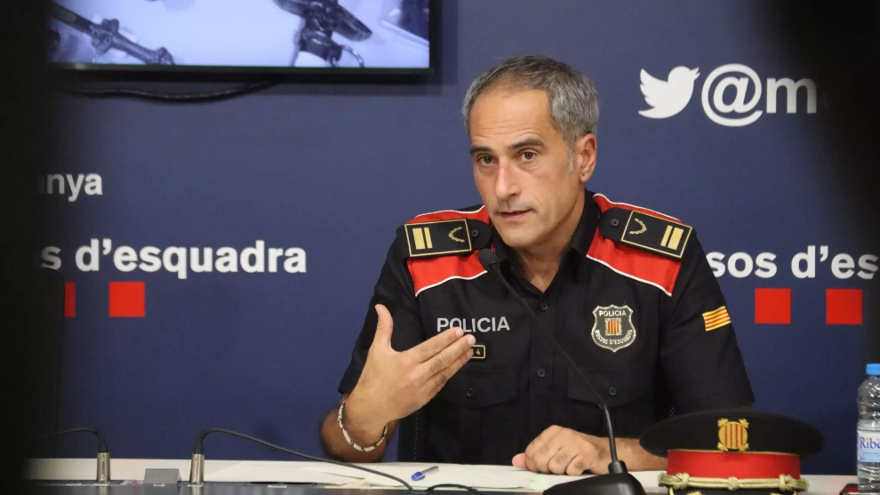 L’intendent David Sánchez, sotscap de la Comissaria General d’Informació, en roda de premsa. Marta Vidal / ACN