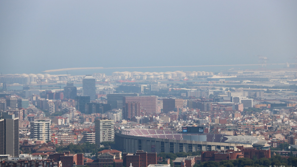 Barcelona amb boira per pol·lució al fons després que es declarés l'episodi per alta contaminació per partícules a Catalunya l'1 de juliol del 2019. ACN/Nazaret Romero