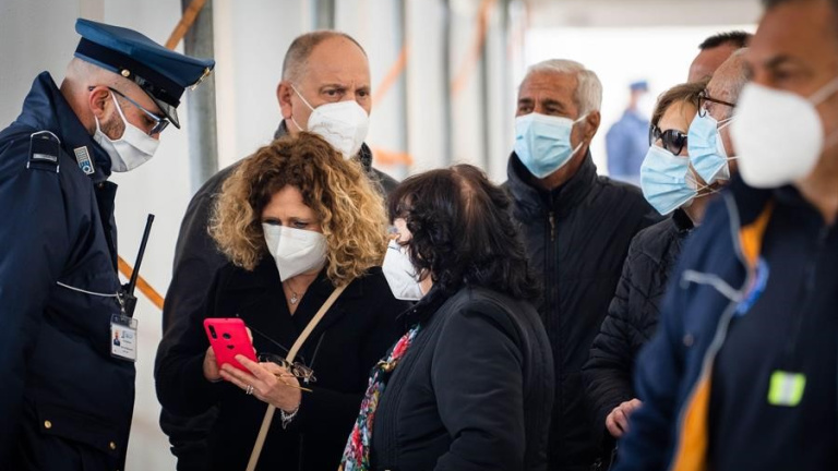 Grup de persones esperen per ser vacunades contra la COVID-19 a Nàpols, Itàlia --Cesare Abbate /EFE/EPA