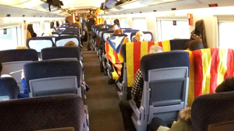 Trens alemanys amb seients quatribarrats i megafonia en català el dia que els independentistes han recorregut Europa per portar les seves reivindicacions al cor del continent.