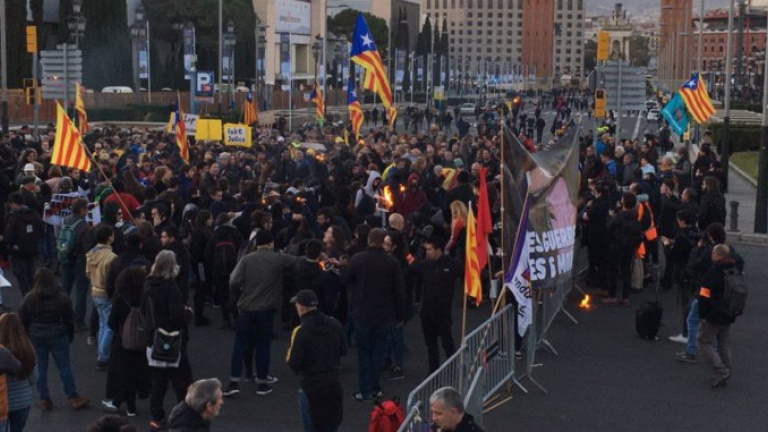 Els CDR han convocat a la ciutadania en la Plaça Espanya pel fet que aquesta nit el monarca presideix a l'MNAC el sopar oficial amb motiu de l'inici del Mobile World Congress 2019, un esdeveniment en el qual coincidirà amb el president de la Generalitat, Quim Torra, i l'alcaldessa de Barcelona, Ada Colau, entre altres autoritats.