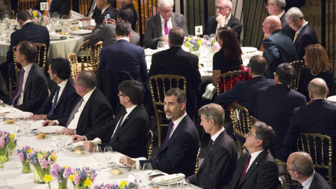 El rei parla de "col·laboració lleial" en el sopar d'inauguració del MWC, amb Puigdemont i Colau