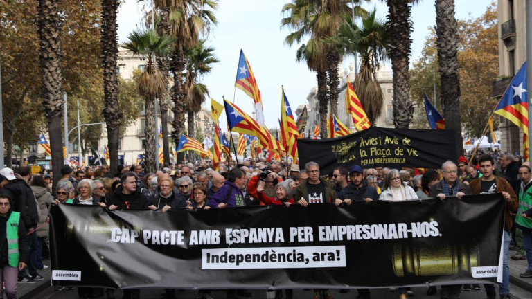 Convocades per l'Assemblea Nacional Catalana, s'han concentrat a Pla de Palau per iniciar una marxa amb final a davant del Palau de la Generalitat. Sota el lema 'Cap pacte amb Espanya per empresonar-nos', l'entitat vol denunciar "la repressió que hi ha al darrere" de la reforma legal, segons l'ANC.