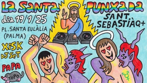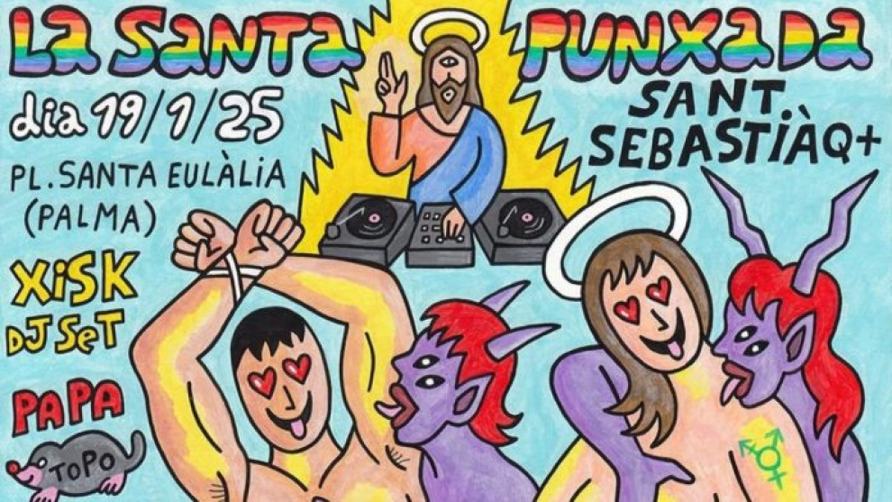 "En el cartel se muestra a San Sebastián con una sobrasada en sus partes íntimas y un demonio que le va a realizar una felación", ha lamentado en una nota la organización ultraconservadora, que también ha denunciado que se represente a una Santa a la que un demonio la masturba y al propio Jesucristo como pinchadiscos.
