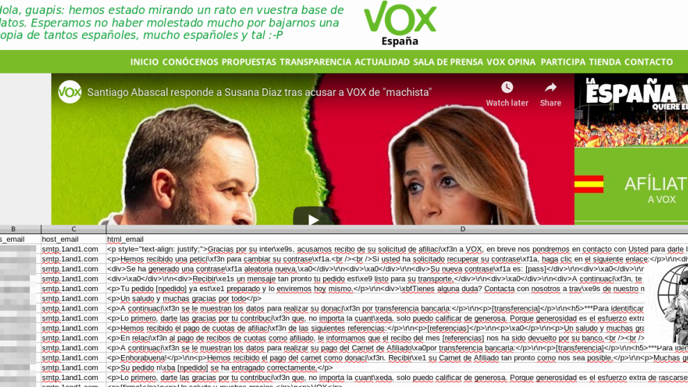 Desde el correo y el teléfono movil del líder de la formación, Santiago Abascal, hasta datos personales de más de 30.000 peresonas. El grupo La Nueve, que se autoincluyen en el movimiento Anonymous, ha logrado acceder a parte de las tripas del sitio web del partido de ultraderecha Vox España.