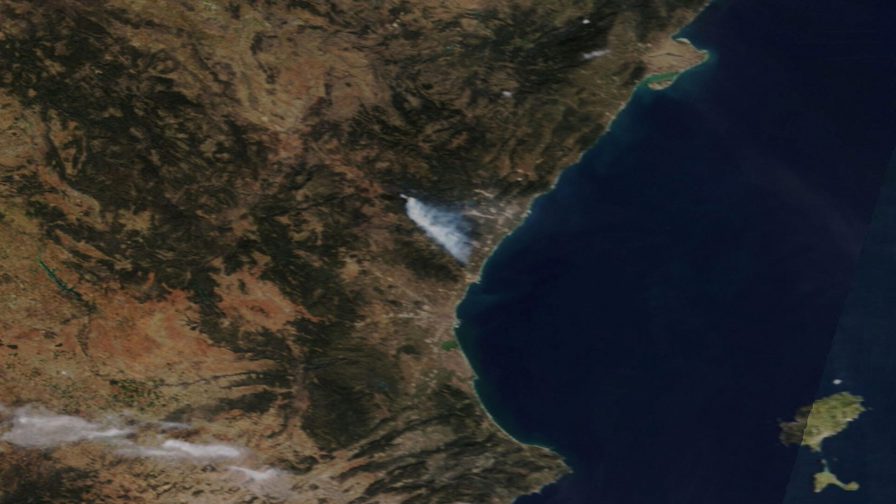 En la fotografía que brinda el satélite se puede ver como el humo casi alcanza el litoral mediterráneo. Sin embargo, las playas de Castelló y los municipios afectados por el incendio están a más de 90 kilómetros de distancia. En la página web NASA Worldview también se puede comparar la vista aérea actual con la de los días previos al siniestro.