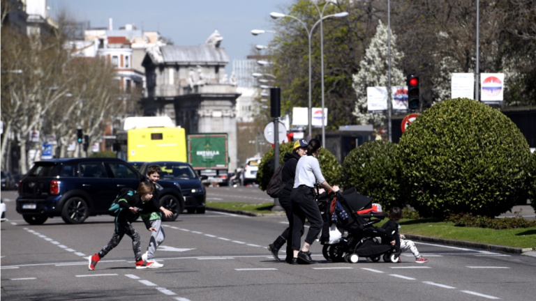 Dos madres pasean con sus hijos frente al Parque del Retiro. Europa Press / Archivo