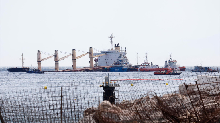 Una vez en el Estrecho de Gibraltar, reconoció que la entrada de agua en el buque era de tal magnitud que había riesgo de hundimiento, por lo que el buque fue finalmente dirigido a un punto donde el barco permanece encallado desde entonces.