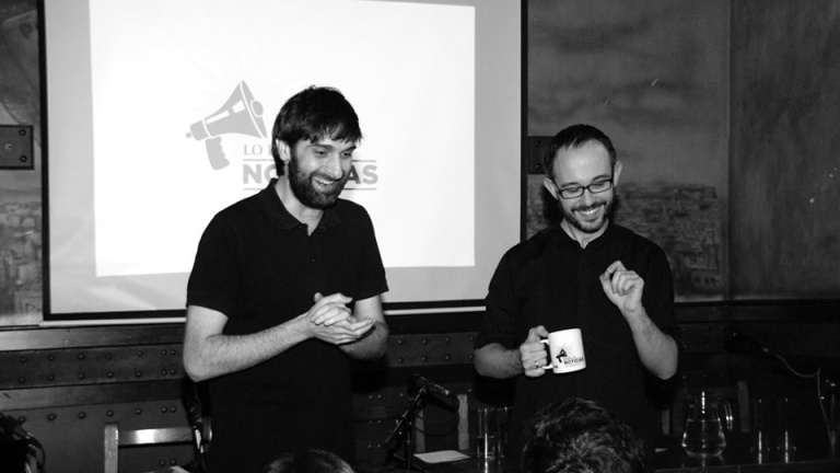 Me convenció Miguel Ánómalo. Nos conocemos desde que hace años hicimos un posgrado de guion de humor en la Universitat Pompeu Fabra. Hacía tiempo que le rondaba por la cabeza crear un programa de radio y tenía el proyecto bastante claro, pero ni él ni yo nos podíamos centrar en él. El verano pasado tuvimos algo de tiempo y comenzamos a trabajar en su desarrollo. Partimos de un formato clásico. Un concurso de radio de humor sobre actualidad con invitados que son mucho más ocurrentes y graciosos que nosotros. Han venido cómicos, guionistas, periodistas o escritores. Ellos ofrecen la parte más fresca y espontánea, ya que el guion está bastante armado. En conjunto suele salir algo divertido. Es un podcast, que por cierto, os podéis bajar aquí @lodelasnoticias, aunque lo mejor y con lo que me quedo es la grabación los viernes a las 19.00 con público en directo en la sala Beer Station. En efecto, spam.