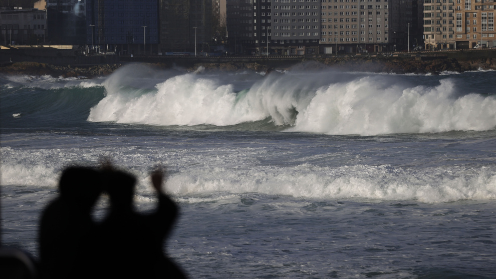 En áreas de la comunidad gallega como A Coruña, Lugo y Pontevedra las olas serán de 5 a 8 metros con rachas de viento del oeste de 50 a 74 km/h en Lugo, A Coruña y Pontevedra.