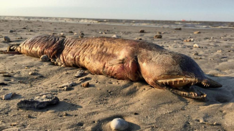 El hallazgo parecía de película. El cadáver de una criatura monstruosa apareció en un playa de Texas (EEUU) días después de que el huracán Harvey arrasara parte del estado. La voz de alarma la dio Preeti Desai, trabajadora de la Sociedad Nacional Audubon (Estados Unidos), que difundió en Twitter imágenes de una extraña criatura marina con dientes afilados y que nadie era capaz de identificar.