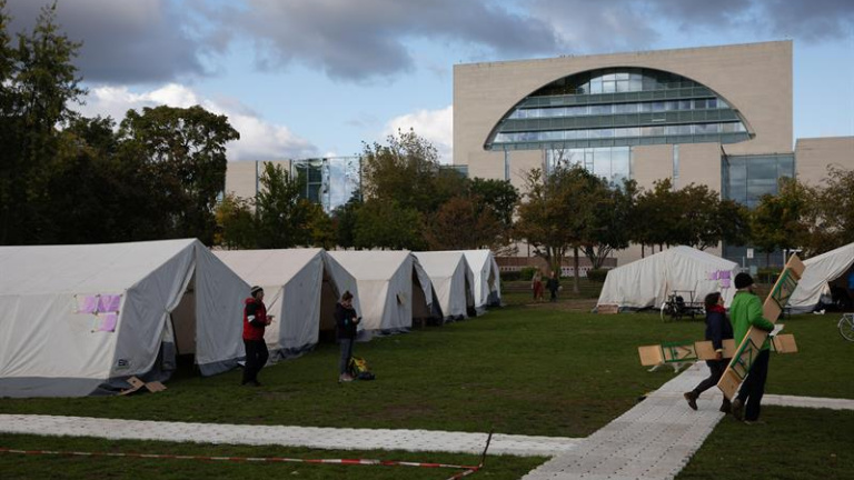 Este sábado quedaron ya instaladas en una explanada vecina a la Cancillería, con el Parlamento federal (Bundestag) al frente, una cincuentena de pequeñas tiendas de campaña, así como otras de dimensiones más grandes donde se organizan las acciones.