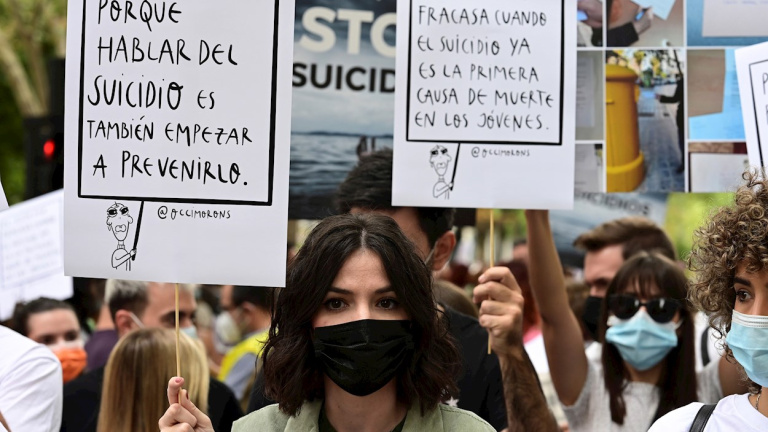 Cientos de personas han salido este sábado a la calle en Madrid para exigir al Gobierno que ponga en marcha cuanto antes un plan para la prevención del suicidio y una estrategia de salud mental, así como visibilizar un problema que provoca un enorme sufrimiento y que se cobra la vida de 3.600 personas cada año.