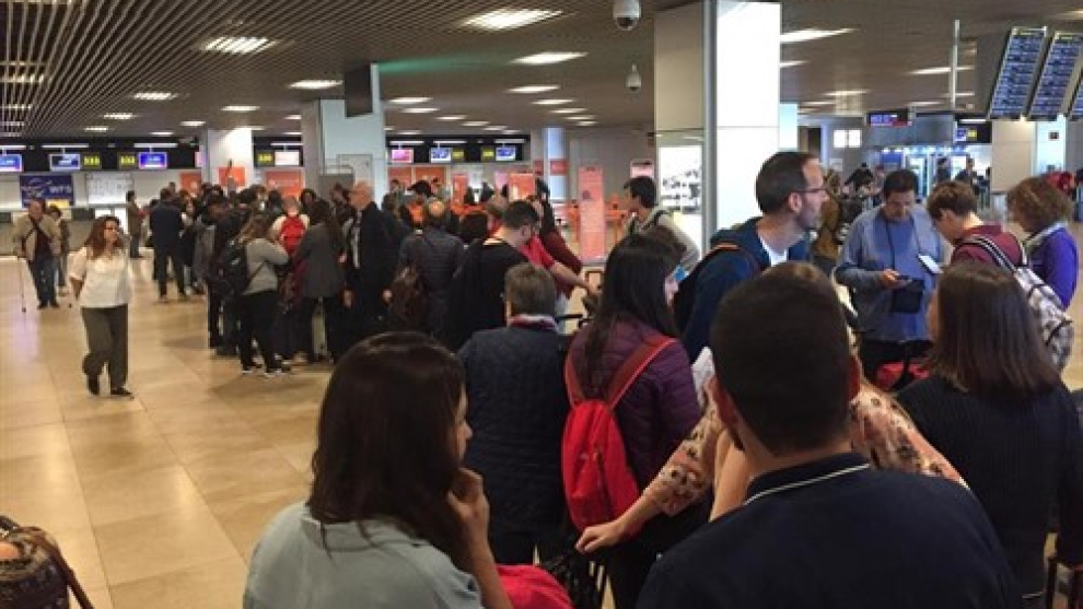 Desde las 5.10 horas de este domingo, comenzando primero en la T2 y después en la T1 y la T4, se han colapsado los accesos de control al aeropuerto "con parones de hora y media" hasta las 11.45, cuando ha comenzado ha haber una mayor fluidez.