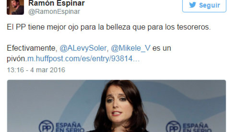 El senador de la formación morada Ramón Espinar ha iniciado una conversación con Andrea Levy reconociendo que su compañero de partido es "un pivón" (sic), a lo que la conservadora ha respondido afeándole la errata, pero con un "Tú también".