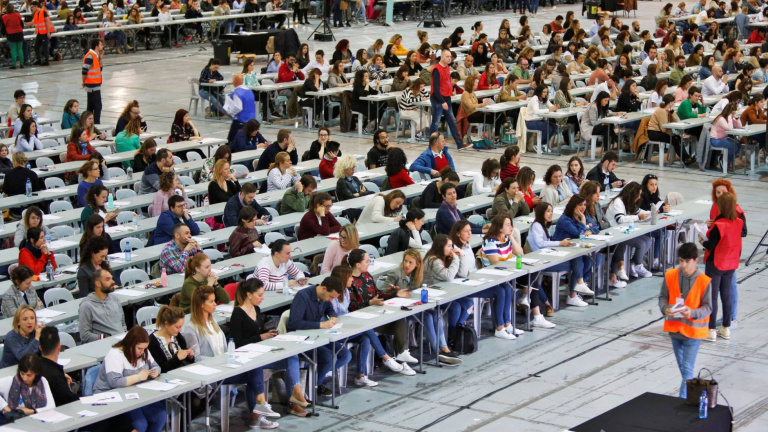 En total, decenas de miles de personas se examinaron este domingo en ciudades de trece comunidades autónomas para conseguir una de las más de 20.500 plazas de enfermería convocadas en la última Oferta Pública de Empleo (OPE). La convocatoria ha coincidido con la celebración del Día Internacional de la Enfermería, en el que el Sindicato de Enfermería (SATSE) ha reclamado una oferta pública que "realmente" cree empleo, ya que considera que la OPE solo servirá para estabilizar las plazas ya existentes.