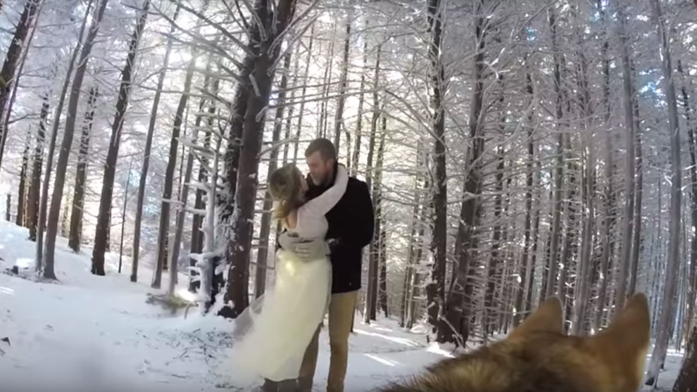 Marshall Burnette y Addie, su mujer, se casaron el 2 de noviembre del pasado 2014 en Roan Mountain, en Tennessee, sobre un manto nevado idílico. Hacía frío pero también se respiraba magia, cuenta Marshall. Para retratar tal enlace de ensueño, además de fotógrafos, la pareja decidió contar con los servicios de un cámara muy especial: su perra Ryder.
