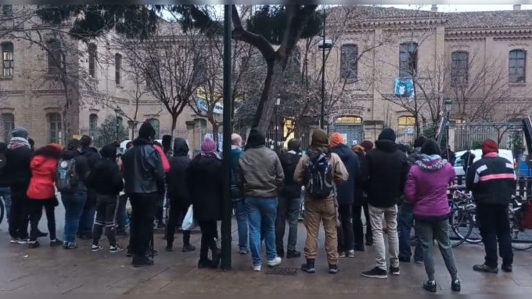 El Centro Social Comunitario (CSC) Luis Buñuel de Zaragoza ha sido desalojado por la Policía Nacional. Hasta 500 personas se concentraron frente al edificio, ubicado en el barrio del Gancho, para protestar contra la intervención policial. "El Buñuel no se rinde", proclamaron los manifestantes.