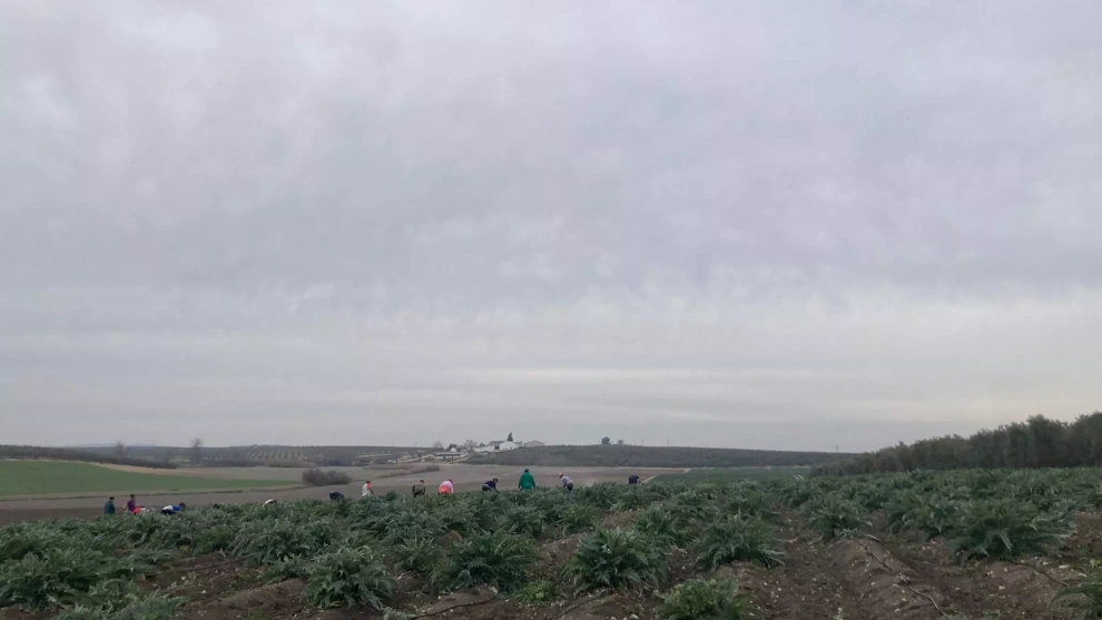 El trabajo es duro. Se doblan las espaldas de las mujeres, la azada se clava en la tierra. A ritmo de soleá, la cuadrilla elimina las malas hierbas para que la alcachofa pueda crecer sana, luego envasarse y enviarse para su venta al norte, hacia Navarra.
