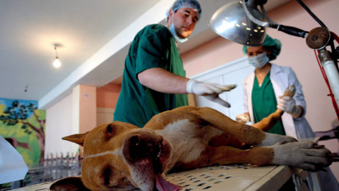 Así fue como los agentes sorprendieron "in fraganti" al hombre mientras procedía al corte de las orejas de un can, de raza american bully, en la sala quirúrgica de una clínica veterinaria de Badajoz.