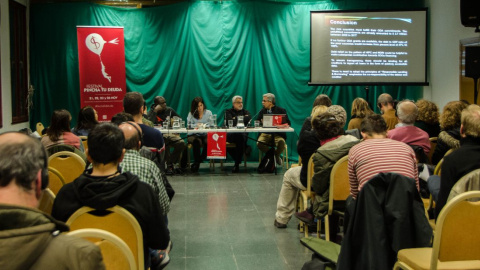 El colectivo Audita Sanidad también estuvo presente en la mesa por parte de Vicente Losada, que empezó su intervención recordando "el famoso artículo 135 de la Constitución española en el que se establece como prioridad el pago de la deuda por encima de cualquier otro gasto, incluido el social, lo que denota una utilización de la deuda como herramienta de sometimiento de los pueblos y como justificación de las políticas de ajuste", en los propios términos de Losada.