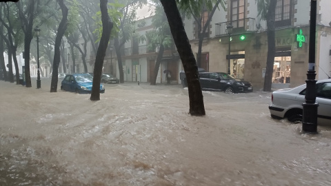La intensidad de las lluvias ha ocasionado incidencias en algunas zonas de la provincia de Cádiz, como en la carretera provincial CA-3113 entre Puerto Real y la barriada rural de La Ina, en Jerez de la Frontera, donde el centro histórico de la ciudad también se está viendo afectado con balsas de agua en algunas de sus calles.
