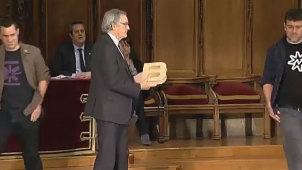 Xavier Artigas y Carlos Xapo Ortega asistieron a la entrega de los premios en el Saló de Cent del Ayuntamiento de la capital catalana, pero lo abandonaron cuando el alcalde fue a entregarles el galardón, como hizo con el resto de premiados.