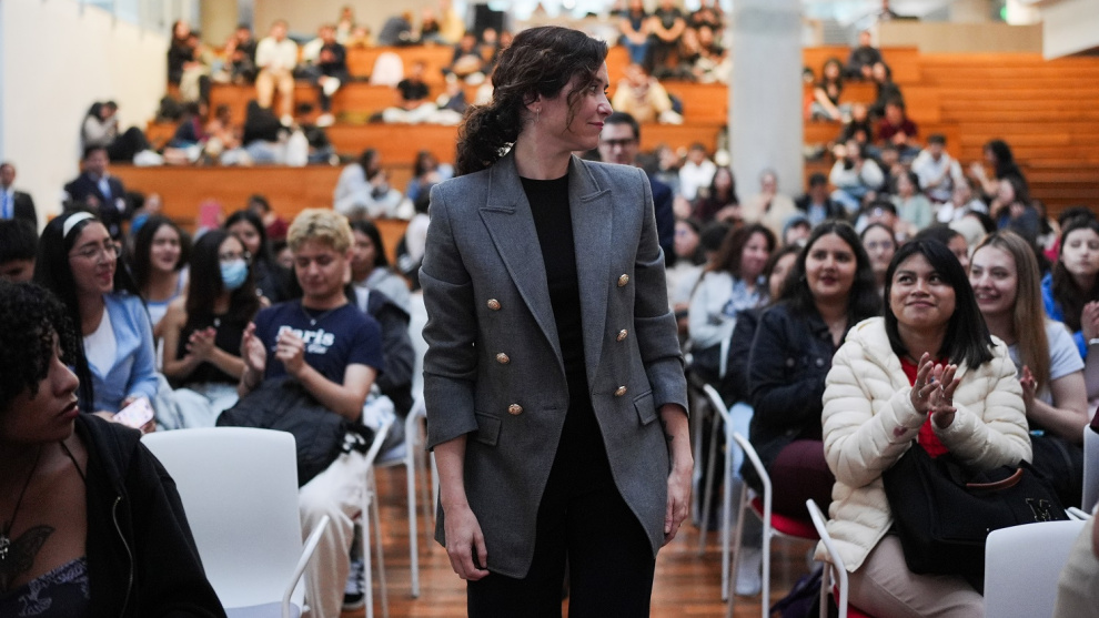 "Hoy la oposición se ha encontrado una silla vacía, que es la silla de la vergüenza y la cobardía de una presidenta que no se ha atrevido a dar la cara el día en que su novio declaraba por un presunto soborno a un directivo de Quirón. La señora Ayuso se ha fugado a Ecuador como se fugó a Alemania y a Extremadura, para no dar ninguna explicación sobre los posibles delitos fiscales, sobre el posible soborno y, lo más importante, los tratos detrás del ático que disfruta", denuncia a Público Manuela Bergerot, portavoz de Más Madrid.