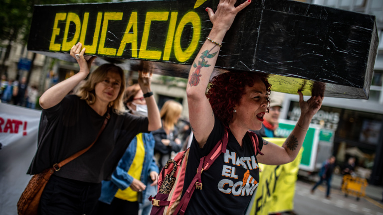 Desde 2019 se han cerrado 23 centros concertados en Catalunya. Algunos de ellos se han reconvertido en públicos, mientras que otros han cerrado definitivamente y se han despedido de su alumnado. Es una situación provocada, principalmente, por el constante descenso de la natalidad, que ha bajado un 37% desde 2008 en esta comunidad. Pero este hecho no afecta solo a las escuelas concertadas: las públicas también se ven amenazadas por esta nueva realidad demográfica. El movimiento en defensa de la escuela pública —agrupado bajo la plataforma La Pública, l’Escola de Tothom— protestó en marzo por el cierre de 111 líneas el próximo curso, con 43 grupos menos en Infantil 3 (I3) y 68 menos en 1º de la ESO.
