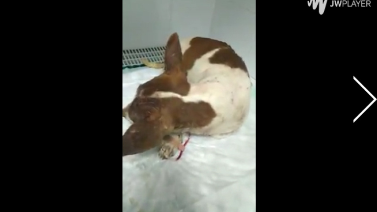 La perra Vida, así es el nombre que le han puesto, mejora poco y está recibiendo la atención y el cuidado que necesita en estos momentos.