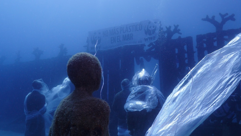 Se trata de una protesta simbólica llevada a cabo por el grupo ecologista WWF. La ONG ha colocado plásticos en algunas de las figuras humanas que se exponen en el interior de las instalaciones del Rubicón y que se muestran a punto de cruzar un muro de más de 30 metros de longitud. Esta obra, creada por Jason deCaires Taylor, representa los peligros a los que se puede enfrentar la humanidad si traspasa los límites de contaminación que pueden soportar los océanos y el planeta. Es por ello que la acción se ha desarrollado en esta zona del museo subacuático.