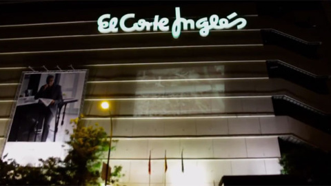 Gallinas encerradas en jaulas produciendo huevos como algunos de los que vende El Corte Inglés. Estas son las imágenes que la organización internacional Igualdad Animal ha proyectado durante una hora sobre la fachada del edificio que la empresa tiene en la calle Goya de Madrid.