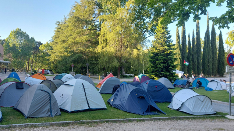 Esta situación de represión no ocurre en España, "a pesar de haber aumentado el comercio de armas con Israel desde el 7 de octubre, como denuncia el Centre Delàs". "Supone una oportunidad de oro", aseguran desde la acampada de la Complutense, para instalar las tiendas de campaña.