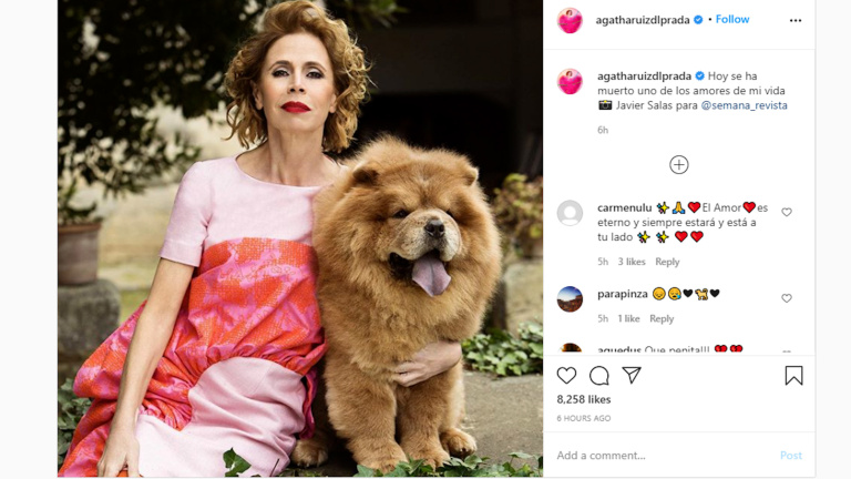 Ágatha Ruiz de la Prada, devastada tras la muerte de su perro