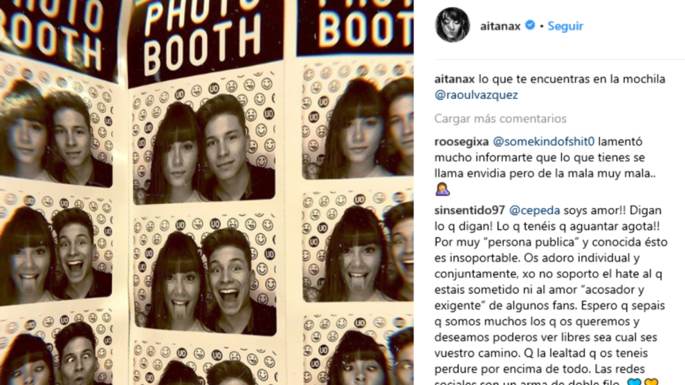 La última foto de Aitana en Instagram ha creado un gran debate en su perfil. Aunque se trate de una divertida instantánea con su compañero Raoul, algunos de sus seguidores han decidido criticar fervientemente a la catalana. Entre tantas palabras, la mayoría de sus fans han querido defender a la joven cantante y entre todos estos mensajes se ha sumado el comentario de Cepeda donde deja claro lo que piensa sobre estos comentarios.
