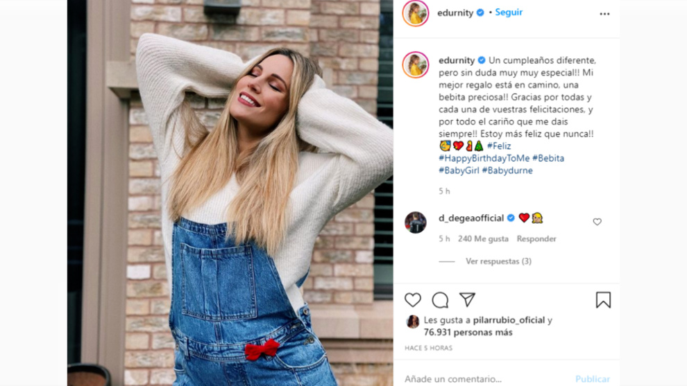 A pesar de lo complicado que está siendo este 2020, lo cierto es que Edurne y David de Gea están disfrutando al máximo este año en el que han conocido la maravillosa noticia de que van a ser papás. Disfrutando al máximo del momento, la pareja ha llevado esta nueva noticia con la mayor discreción posible durante el confinamiento. La cantante ha celebrado hoy su cumpleaños de una forma muy especial a la espera de convertirse en mamá por primera vez y ha querido desvelar en este día tan especial el sexo del bebé que espera.