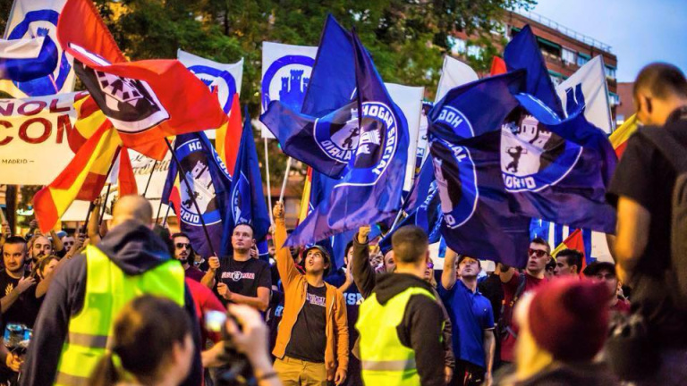 "Hogar Social Madrid vuelve a ocupar un edificio para continuar con su labor de Justicia Social, repartiendo alimentos a los más necesitados, dando techo y cariño a los olvidados y prestando servicio jurídico a los españoles estafados por los bancos". Así comienza el comunicado con el que la organización ultraderechista Hogar Social Madrid ha hecho pública su última ocupación en la sede central de Banco Madrid en plena Castellana. Con esta, son ya seis las ocupaciones que esta organización formada en 2014 ha llevado a cabo en Madrid.