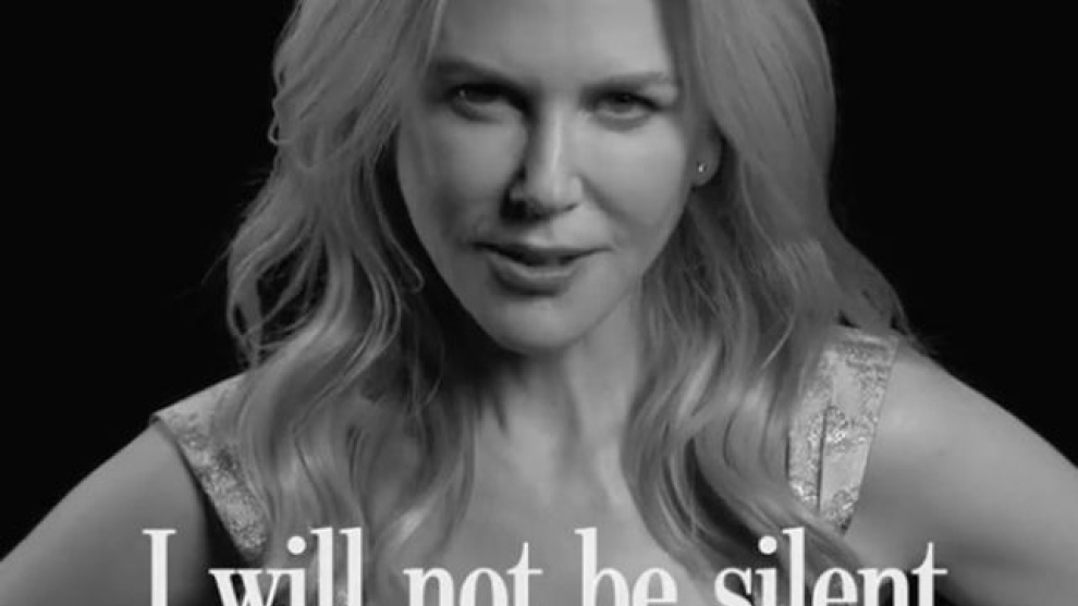 Las actrices y actores han grabado un vídeo en blanco y negro en el que repiten el lema mientras miran fijamente a cámara. Quien comienza la grabación es la actriz Nicole Kidman y quienes la finalizan son las también intérpretes Jennifer Lawrence y Emma Stone, que se miran mutuamente para después afirmar. "Ella tampoco permanecerá en silencio".