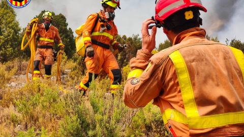 Esta temporada, las llamas han aniquilado el 1,3% de toda la superficie del territorio valenciano. El contexto, un verano fatídico en el que la península ha llegado a tener más de 30 focos activos simultáneamente. En la foto, los equipos de bomberos trabajan para evitar la propagación de la quema, a 18 de agosto.